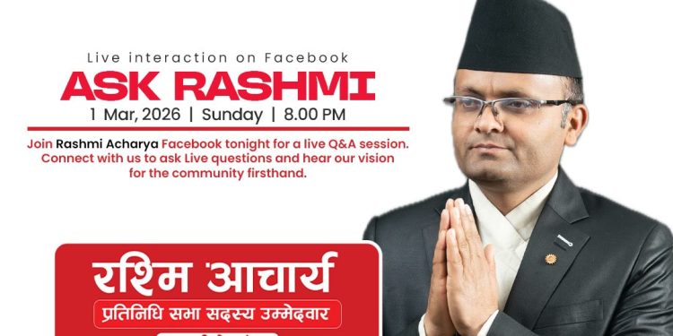 कास्की २ का एमाले उम्मेदवार रश्मि आचार्यले सामाजिक संजालबाट आज बेलुकी ८ बजे मतदातासँग प्रत्यक्ष संवाद गर्ने