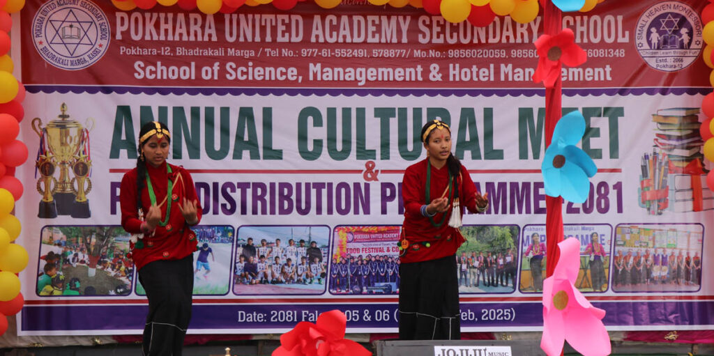 पोखरा । पोखरा महानगरपालिका वडा नं १२ भद्रकालीस्थित पोखरा युनाइटेड एकेडेमी सेकेण्डरी स्कुलको वार्षिक सांस्कृतिक भेला तथा पुरस्कार वितरण कार्यक्रम सम्पन्न भएको छ ।