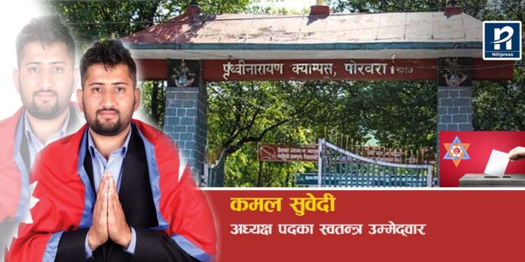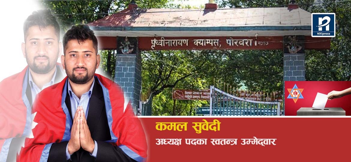 यता, स्वतन्त्र उम्मेद्वार कमल सुवेदीले पृथ्वीनारायण क्याम्पस राजनीतिक क्रीडास्थल बन्दै गएकाले आफू टुलुटुलु हेरेर बस्न नसकेको बताउँछन् । शैक्षिक क्षेत्रमा विद्यार्थीको हितका लागि स्वतन्त्र व्यक्तिले नै काम गर्न सक्ने भएकाले आफू चुनावी मैदानमा उत्रिएको उनी बताउँछन् । क्याम्पसमा मेरिटोक्रेसी लागू हुर्नुपर्ने उनको जोड छ ।