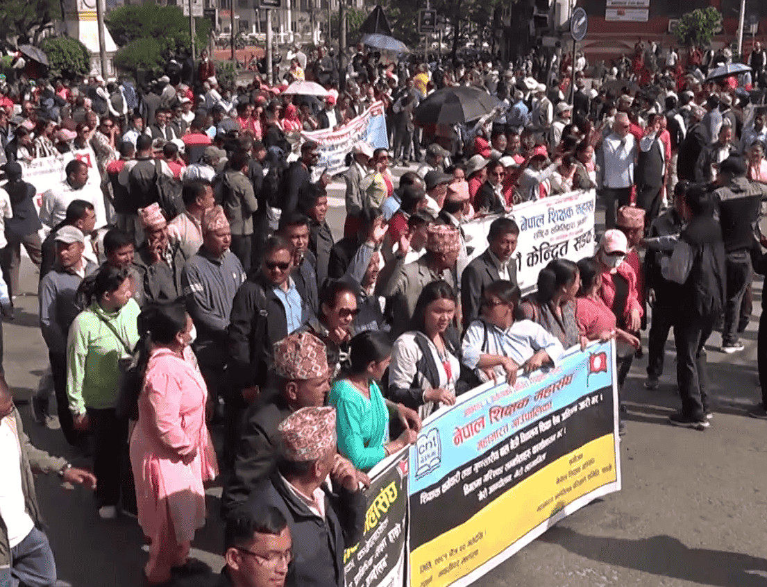 विद्यालय शिक्षा ऐन जारी गर्न माग गर्दै शिक्षकहरुले आज पनि प्रदर्शन जारी राखेका छन् । करिव १५ दिनदेखि शिक्षकहरु काठमाडौंको माईतीघर मण्डलामा आन्दोलनरत छन् । शिक्षामन्त्री, सभामुख, प्रधानमन्त्रीसँग समेत छलफल गरे पनि निस्कर्ष शिक्षकहरुले आन्दोलन छोडेका छैनन् । विद्यालय शिक्षा ऐन जारी नभएसम्म आन्दोलन जारी रहने शिक्षकहरुको अडान छ । आन्दोलनमा सहभागी एक शिक्षकले कक्षा १२ को परीक्षा वैशाख ११ गतेदेखि शुरु हुने र यसमा पनि शिक्षकहरु समावेश नहुने जानकारी दिनुभयो । राज्यले आफूहरुका माग छिटो सम्बोधन गर्नेमा आशावादी रहेको उहाँको भनाइ छ । शिक्षकहरुले शनिवारसम्म बिहान ११ बजेदेखि अपरान्ह ४ बजेसम्म आन्दोलन गर्दै आएकोमा आईतवारबाट भने बिहान ९ देखि १२ बजेसम्मलाई समय परिवर्तन गरेका छन् ।