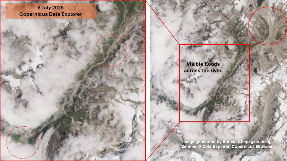 भू—उपग्रह तस्बिरको विश्लेषणको आधारमा रसुवाको बाढीको कारण तिब्बती क्षेत्रको हिमताल विस्फोट रहेको प्रारम्भिक निष्कर्ष सार्वजनिक भएको छ ।