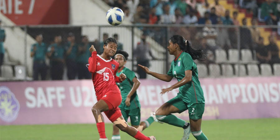 ढाकामा जारी साफ यू-२० महिला फुटबल च्याम्पियनसिप अन्तर्गतको अन्तिम खेलमा बंगलादेशसँग नेपाल ४-० गोल अन्तरले पराजित भएको हो ।