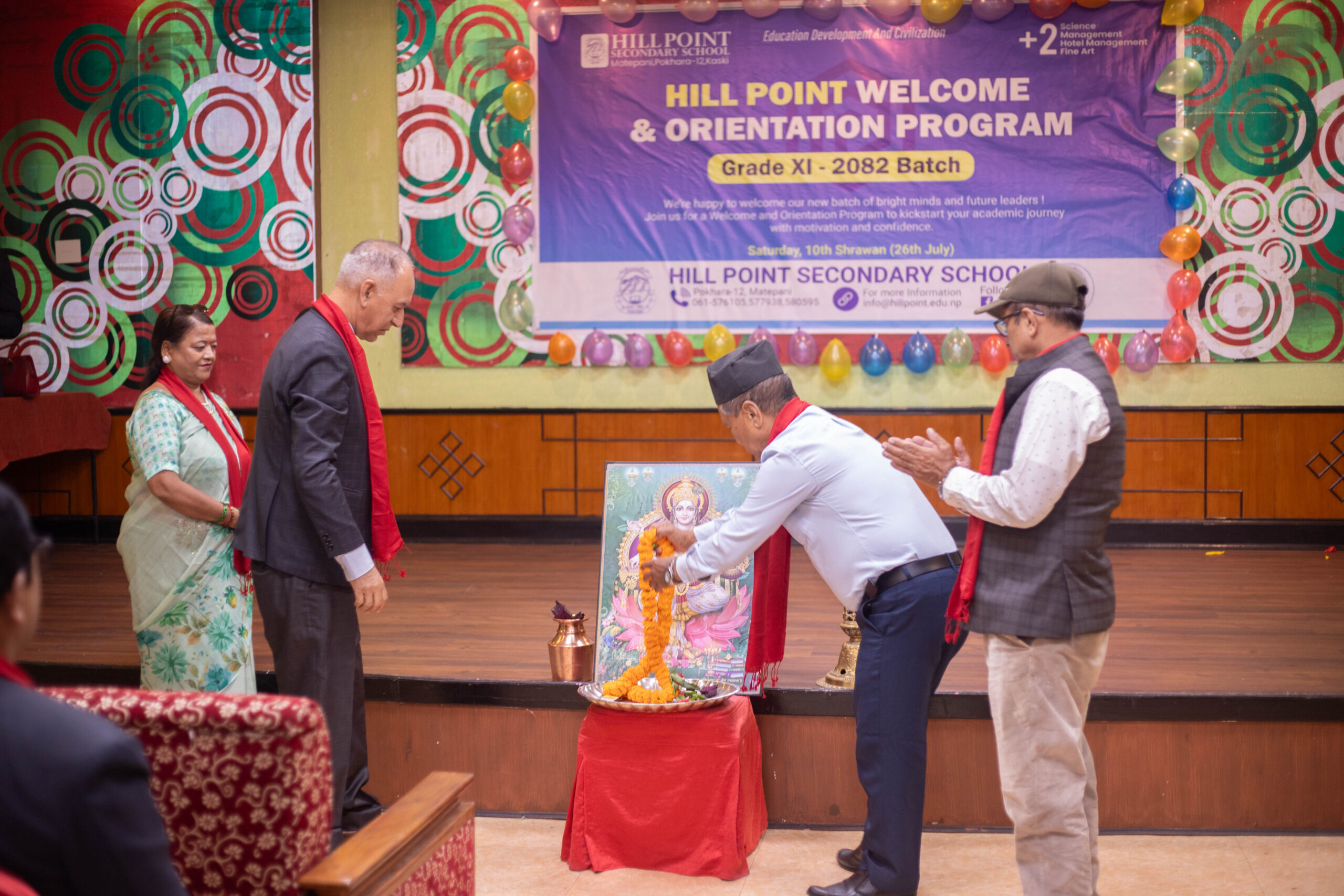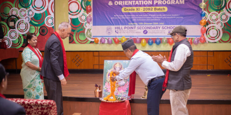 पोखरा – पोखरा महानगरपालिका वडा नं. १२ स्थित हिलप्वाइन्ट माध्यमिक विद्यालयले शनिबार कक्षा ११ मा नवप्रवेशी विद्यार्थीलाई स्वागत गर्दै भव्य ‘वेलकम कार्यक्रम–२०८२’ सम्पन्न गरेको छ। उक्त कार्यक्रम लेकसाइड स्थित माउन्ट कैलाश रिसोर्टमा  आयोजना गरिएको थियो।