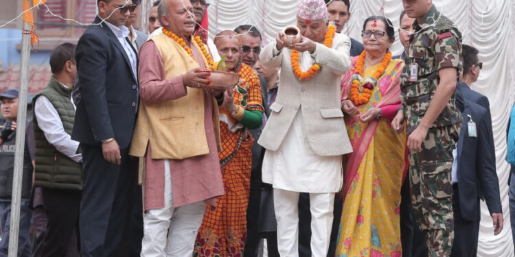 राष्ट्रपति रामचन्द्र पौडेलले गुह्वेश्वरी पुगेर सूर्यसहित छठी माताको पूजा आराधना एवं अघ्र्यदान गर्नुभएको छ । रोल… सोमवार राष्ट्रपति पौडेलले गुह्वेश्वरी पुगरे सूर्यसहित छठी माताको पूजा आराधना एवं अघ्र्यदान गर्नुभएको हो । देशका विभिन्न भागमा भव्यरूपमा मनाइने छठ पर्वका अवसरमा राष्ट्रपतिले प्रत्येक वर्ष गुह्येश्वरी र कमलपोखरीमा सूर्यदेवसहित छठी माताको पूजा आराधना गरी अस्ताउँदो सूर्यलाई अघ्र्य दिने परम्परा रही आएको छ । तर यस वर्ष भने गुह्वेश्वरीमा मात्रै जानुभएको हो ।