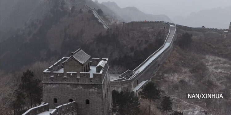 उत्तरी चीनमा चलेको चिसो हावाको लहरले व्यापक तापक्रम गिरावट ल्याएपछि तियानजिनको जिझोउ जिल्लामा अवस्थित विश्वप्रसिद्ध ग्रेट वालमा यस जाडो मौसमको पहिलो हिमपात भएको छ । हिउँले ढाकिएको ग्रेट वालको दृश्य अत्यन्त मनमोहक बनेको छ । जसले पर्यटकहरूलाई जाडोको सुन्दरतामा रम्ने अवसर प्रदान गरेको छ । चीनको मौसम विभागकाअनुसार हालैको चिसो लहरले उत्तरी क्षेत्रमा तापक्रमलाई ह्वात्तै घटाएको छ । यसले गर्दा जिझोउ जिल्लास्थित हुआंग्यागुआन (ज्गबलनथबनगबल) खण्डको ग्रेट वाल सेतो हिउँको पत्रले ढाकिएको छ । यो दृश्यले ग्रेट वालको ऐतिहासिक भव्यतालाई थप आकर्षक बनाएको छ । जाडोमा हिउँ परेको ग्रेट वाल हेर्न विश्वभरका पर्यटकहरू आकर्षित हुने गरेका छन् । हिउँले ढाकिएका अग्ला टावरहरू र घुमाउरो पर्खालहरूले परी कथाजस्तो वातावरण सिर्जना गर्छ ।