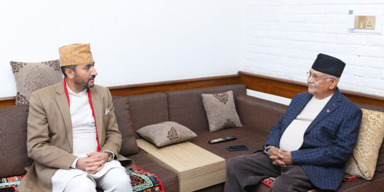 सरकारका प्रवक्ता तथा सञ्चार तथा सूचना प्रविधिमन्त्री जगदीश खरेलले नेकपा (एमाले) का अध्यक्ष तथा निःवर्तमान प्रधानमन्त्री केपी शर्मा ओलीसँग भेटवार्ता गर्नुभएको छ । शुक्रवार बिहान भक्तपुरको गुण्डुस्थित ओलीको निजी निवासमा पुगेर मन्त्री खरेलले छुट्टै भेट गर्नुभएको हो । सञ्चारमन्त्रीको सचिवालयकाअनुसार यो भेट निर्धारित कार्यक्रमअनुसार भएको हो । यसअघि खरेलले नेपाली काँग्रेसका सभापति शेरबहादुर देउवालाई महाराजगञ्जस्थित निवासमा भेट्नुभएको थियो । शुक्रवार नै नेकपा (माओवादी केन्द्र) का अध्यक्ष पुष्पकमल दाहाललाई खुमलटारमा भेट्ने तालिका रहेको छ ।