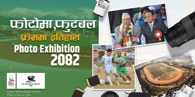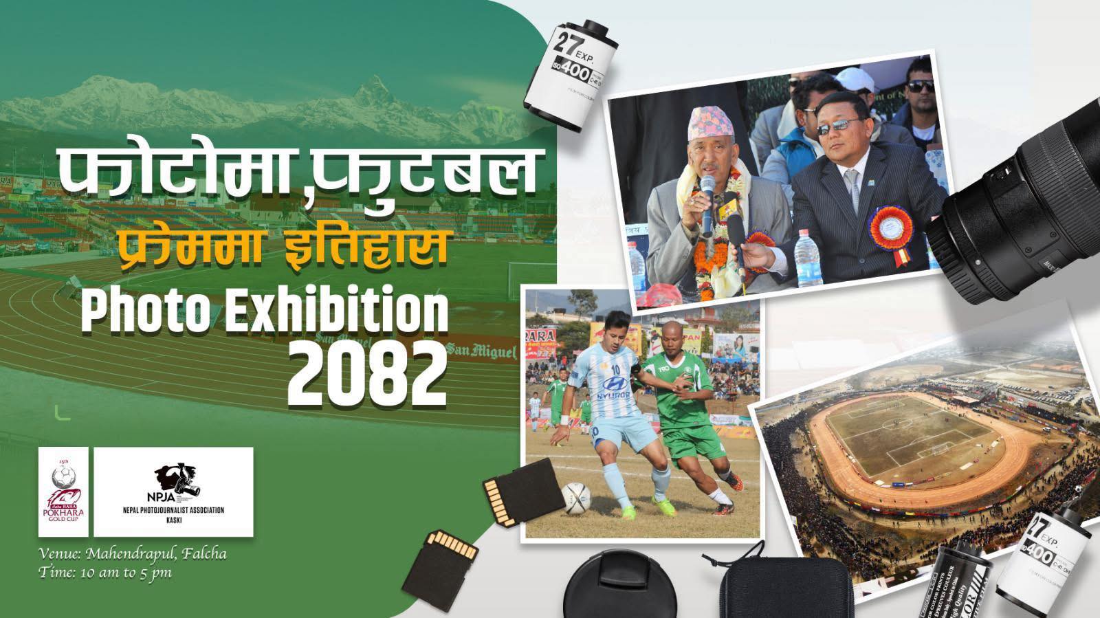 नेपाल फोटो पत्रकार संघ (एनपिजेए), कास्कीको आयोजना र सहारा क्लब पोखराको सहयोगमा शुक्रबार ‘फोटोमा फुटबल, फ्रेममा इतिहास’ फोटो प्रदर्शनी हुने भएको हो । पोखरा महेन्द्रपुलस्थित फल्चामा हुने प्रदर्शनीमा प्रतियोगिताका दौरान खिचिएका अविस्मरणीय क्षणहरू समेटिएको फोटो प्रदर्शन गरिने एनपिजेए कास्की अध्यक्ष राम गुरुङले जानकारी दिए ।