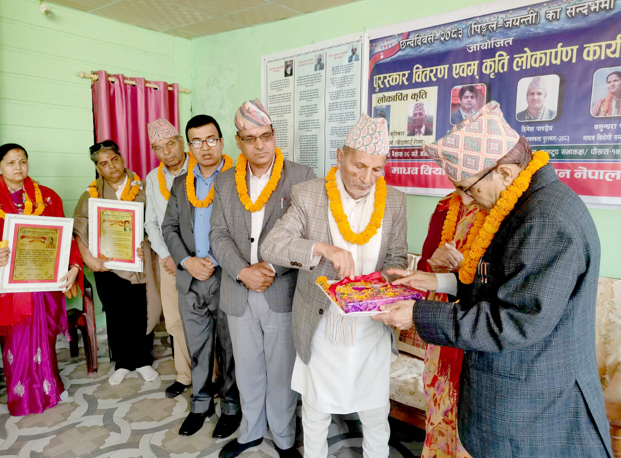 पोखरा । विभिन्न पुरस्कार वितरण र महाकाव्य लोकार्पणसहित् पोखरामा पनि छन्ददिवस मनाइयो । सोही अवसरमा पोखरा १७, बेलघारीस्थित माधव वियोगी वाङ्मय प्रतिष्ठान नेपालले छन्दशास्त्रका प्रणेत महर्षि पिङ्गलको जन्म–जयन्तीका रूपमा छन्ददिवस मनायो ।