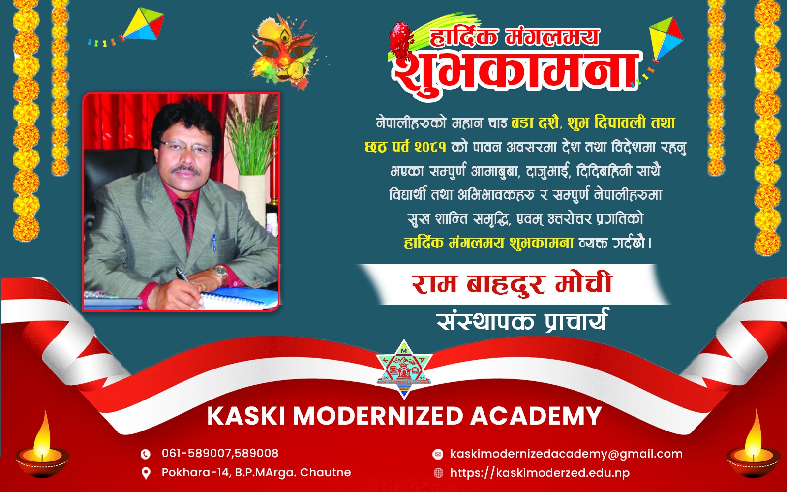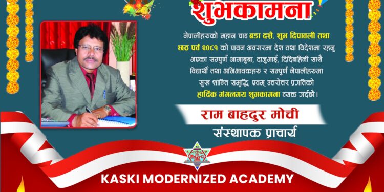 कास्की मोडनाईज्ड एकेडेमीको संस्थापक प्राचार्य राम बाहदुर मोची द्वारा बडा दशैंको शुभकामना