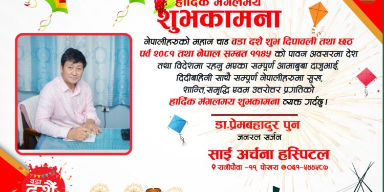 साई अर्चना हस्पिटलको डा. प्रेमबहादुर पुन द्वारा बडा दशैंको शुभकामना