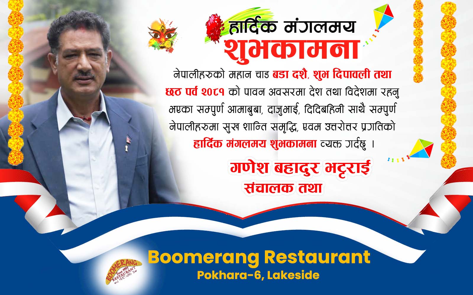 सञ्चालक गणेश बहादुर भट्टराई द्वारा बडा दशैंको शुभकामना