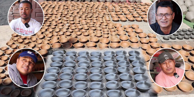 तिहार शुरु हुन लागेसँगै यतिबेला भक्तपुरका प्रजापती समुदाय माटोका भाँडा बनाउन व्यस्त छन् । माटोका पालादेखि कलशहरु बनाउन यतिबेला प्रजापती समुदायलाई भ्याइनभ्याइ छ । माटोका भाँडा अरु बेला पनि माग आउने गरे पनि तिहारको समयमा भने अन्य समयको तुलनामा बढी माग आउने प्रजापती समुदायको भनाइ छ । माटोका भाँडाको माग प्रत्येक वर्ष बढ्दै गइरहे पनि भाँडा बनाउने माटो प्राप्त गर्न भने कठिन हुँदै गएको प्रजापती समुदायको भनाइ छ । शुरुमा जता गएपनि माटो खनेर ल्याउन पाइने तर अहिले प्लटिङका कारण माटो पाउन मुस्किल भएको गुनासो प्रजापती समुदायको छ । न्युज एजेन्सी नेपालसँग कुरा गर्दै भक्तपुरका गणेशकुमार प्रजापतीले आफूले सानैदेखि माटोको भाँडो बनाउने काम गरेको भन्दै माग राम्रो आएको बताउनु भयो । उहाँले पालाको मूल्य पहिला पनि दुई रुपैयाँ र अहिले पनि सोही मूल्यमा विक्री ग्रिरहेको बताउनु भयो । उहाँले विगतको दाँजोमा माग केही घटेको भएपनि माटोका भाँडाको माग अहिले पनि रहेको बताउनु भयो । उहाँले पहिला भक्तपुरकै विभिन्न ठाउँबाट माटो खनेर ल्याउन पाउने भएपनि अहिले साँखु लगायत काभ्रेपलाञ्चोकका विभिन्न ठाउँबाट किनेर ल्याउनुपरेको बताउनु भयो ।