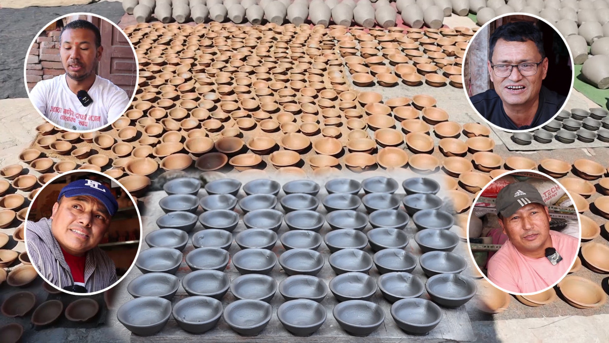 उहाँले भन्नुभयो, ‘हाम्रो यो माटोको भाँडा बनाउने पुख्र्यौली पेशा हो । बाजे बराजुले बनाउनु हुन्थ्यो । हामी पनि बनाइरहेका छौँ । पुरानै रेटमा छ दियो । तिहारमा विशेष गरेर यो पाला मात्रै बिक्छ । अरु बेला सिजनअनुसारले सामानहरु बिक्छ । सदावाहर खुत्रुके, धुपाउरो, सामान बनाउन माटोको अभाव छ । दाउराको अभाव छ । इन्धनको समस्या छ । सहज रुपमा भए काम सुचारु हुन्छ ।’