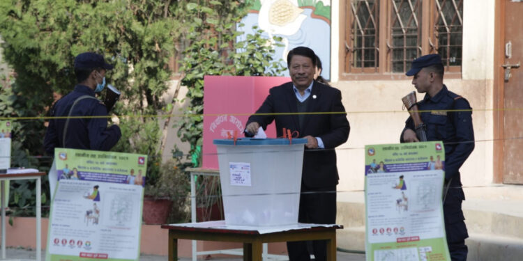उपप्रधानमन्त्री एवं शहरी विकासमन्त्री प्रकाशमन सिंहले काठमाडौं महानगरपालिका १६ को वडाध्यक्षको निर्वाचनका लागि मतदान गर्नुभएको छ ।