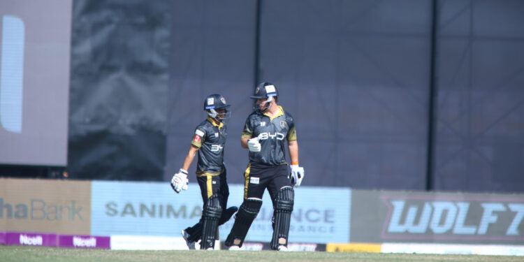 शिखर धवनको अर्धशतकलाई छायाँमा पार्दै काठमाडौं गुर्खाजले कर्णाली याक्सलाई ३ विकेटले हराउँदै पहिलो जित दर्ज गरेको छ । कर्णालीको यो लगातार दोस्रो हार हो । जवाफमा १५० रनको विजय लक्ष्य पछ्याएको काठमाडौंले १९ ओभर ३ बलमा ७ विकेट गुमाउँदै लक्ष्य पूरा ग¥यो । काठमाडौंले संघर्षपूर्ण शुरूवात ग¥यो । ४१ रन जोड्दा ४ विकेट गुमाइसकेको थियो । शंकर राना ६ रनमा, स्टफेन इस्कीनाजी ३ रनमा, माइकल लेभिट २२ रनमा र भीम सार्की ९ रनमा आउट भए । यसपछि जेराड इरामस र सुमित महर्जनले पाँचौं विकेटको लागि ५७ रनको साझेदारी गर्दै इनिङस सम्हाले। जेराड ३८ रनमा आउट भए । यसपछि सुमित महर्जन र कप्तान करण केसीले टिमलाई जिततर्फ अगाडि बढाउँदै थिए । १९ औं ओभरमा सोमपाल कामीको बलमा करण केसीले एक छक्का र चौका प्रहार गर्दै टिमलाई जित नजिक पु¥याए । छैटौं बलमा भने सोमपालको बलमा भुवन कार्कीद्वारा करण क्याच आउट भए । करण १० बलमा दुई चौका र दुई छक्कासहित २० रनमा आउट भए । अन्तिम ओभरमा ७ रन चाहिएको थियो । यो ओभरमा एक विकेट गएपनि काठमाडौंले ३ बल अगाडि लक्ष्य पूरा ग¥यो ।