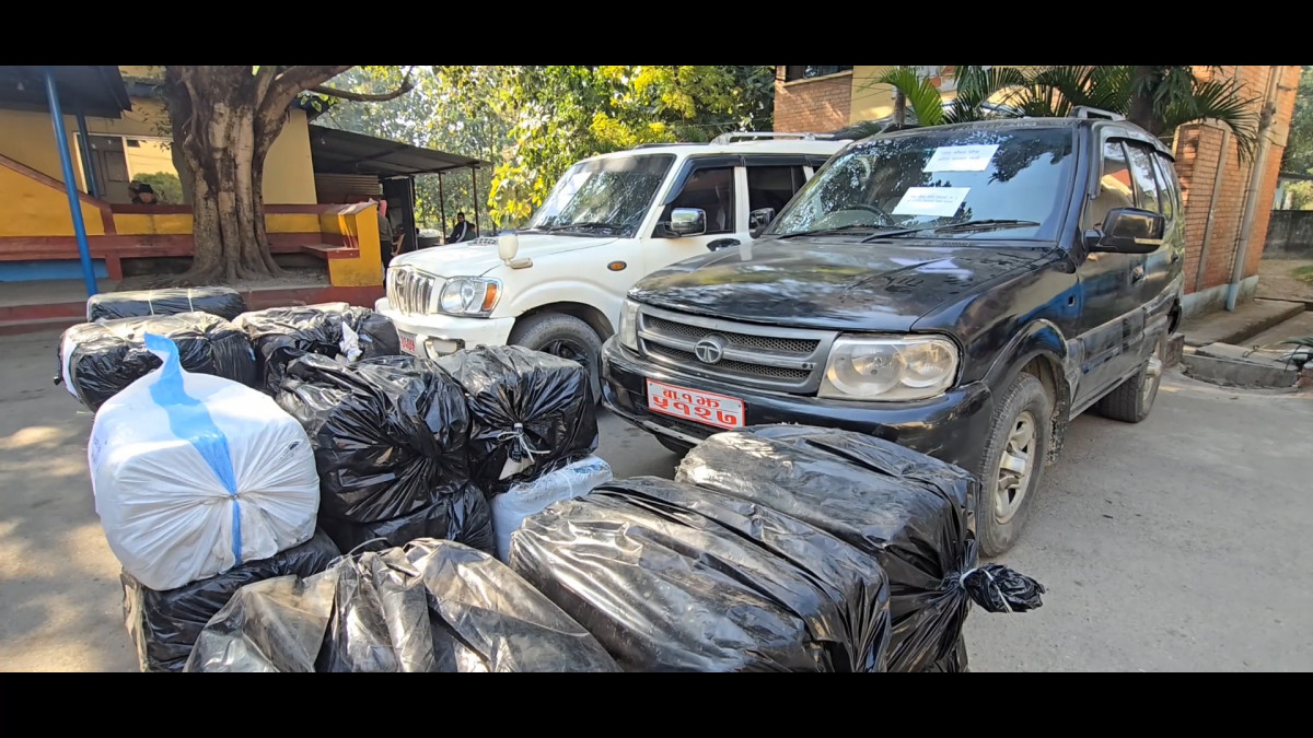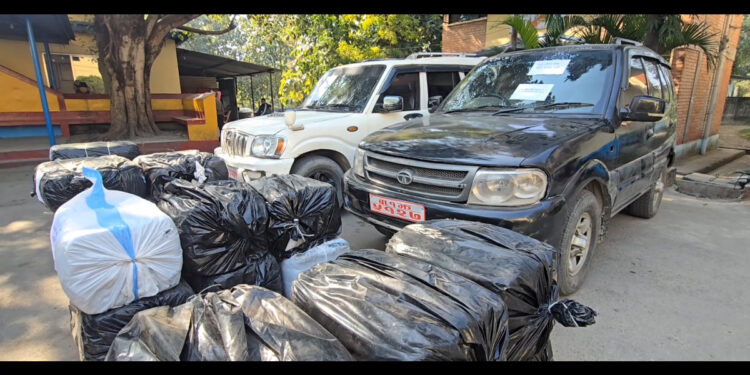 सरकारी नम्बर प्लेटका दुई गाडीबाट ६ सय ९० किलो गाँजा बरामद